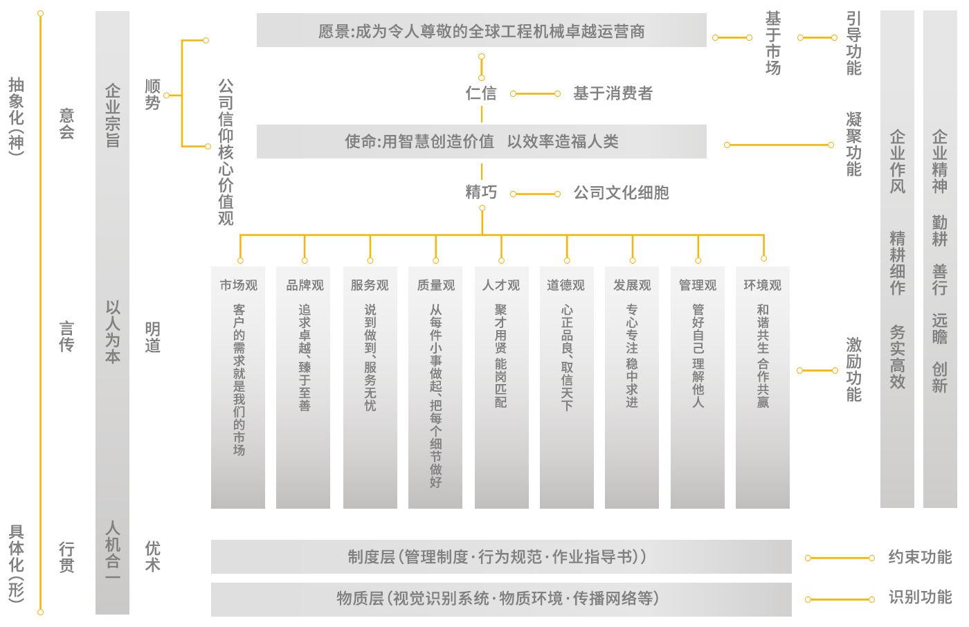 龍工文化包括精神、制度、物質(zhì)三大層面。